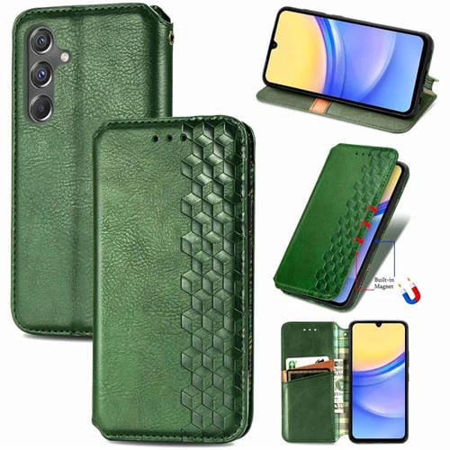 Funda para Teléfono Samsung Galaxy A15 Cuero Magnético Prensado Rejilla Cúbica (Verde)
