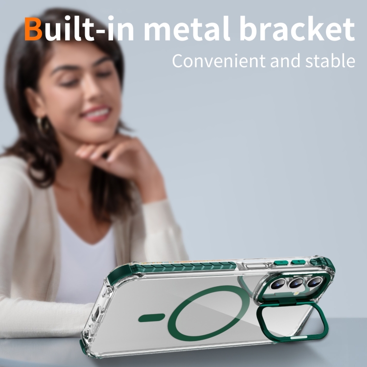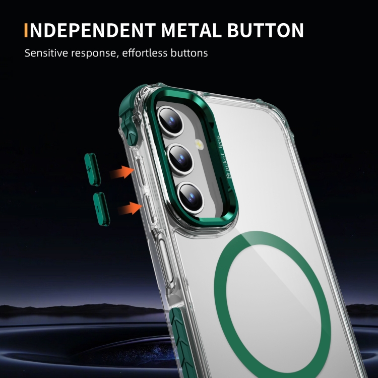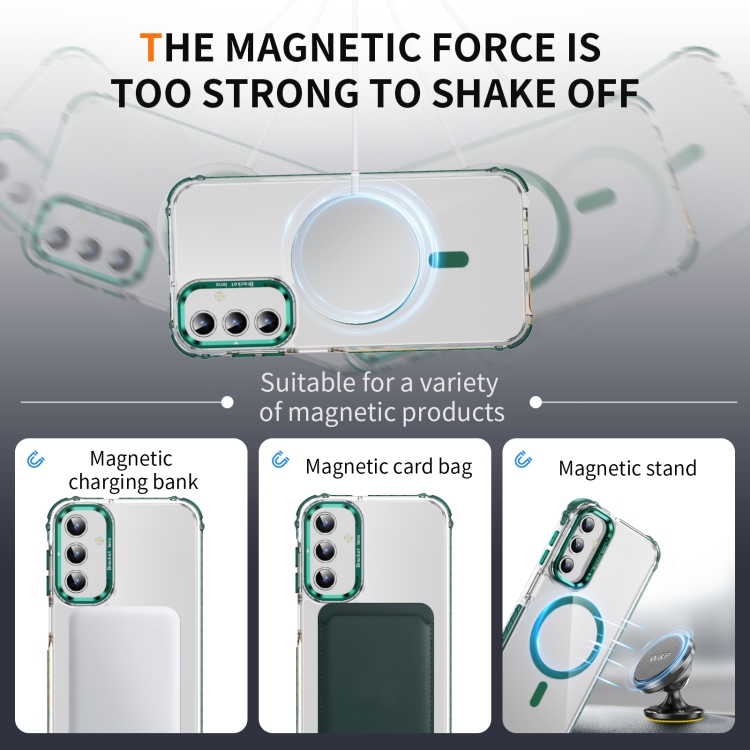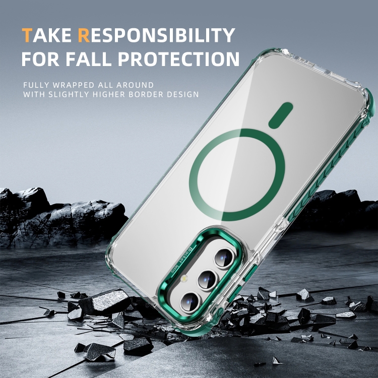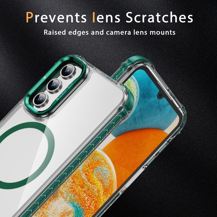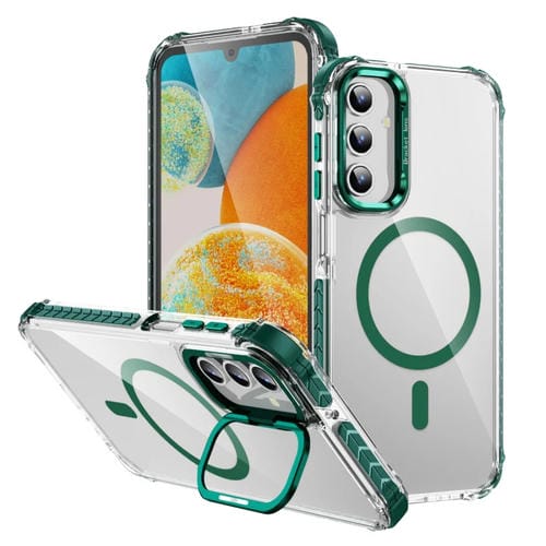 Estuche para Teléfono Samsung Galaxy A15 Rainbow Series Transparente con Soporte para Lente Magsafe (Verde)