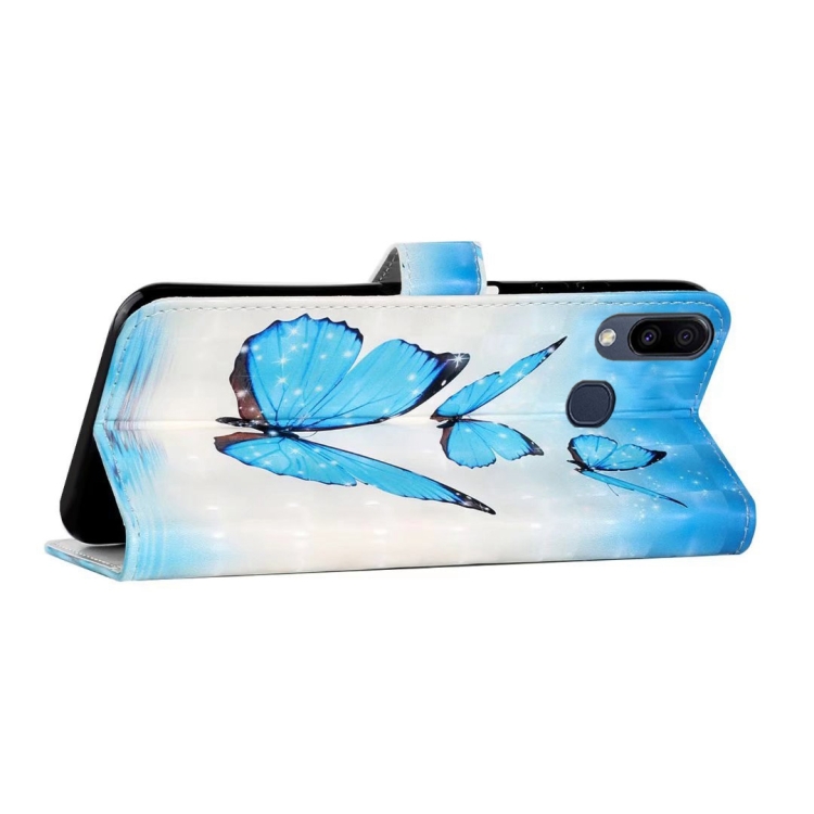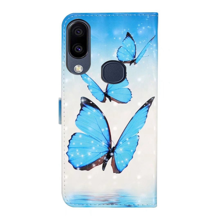 Funda de Cuero Samsung Galaxy A20E Dibujo 3D en Relieve al Óleo (3 Mariposas)