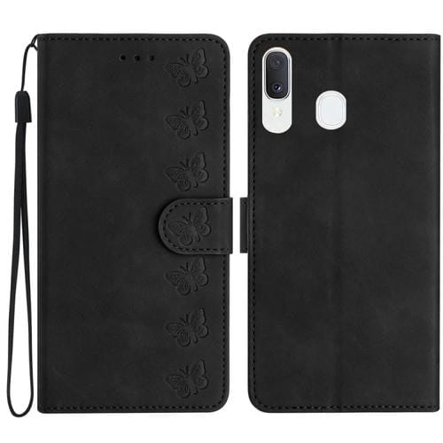Caja de Teléfono Samsung Galaxy A20E Seven Butterflies Cuero En Relieve (Negro)