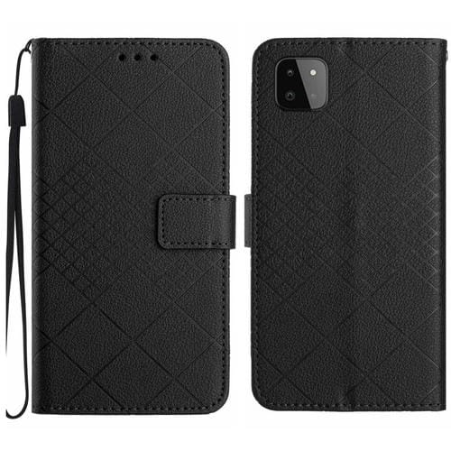 Funda para Samsung Galaxy A22 5G Cuero Textura Rejilla Rómbica (Negro)
