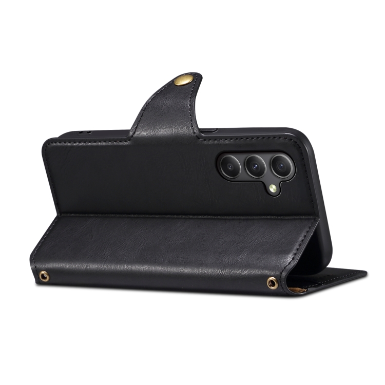 Funda para Teléfono Samsung Galaxy A24 5G Denior Textura Piel de Vaca Estilo Billetera (Negro)