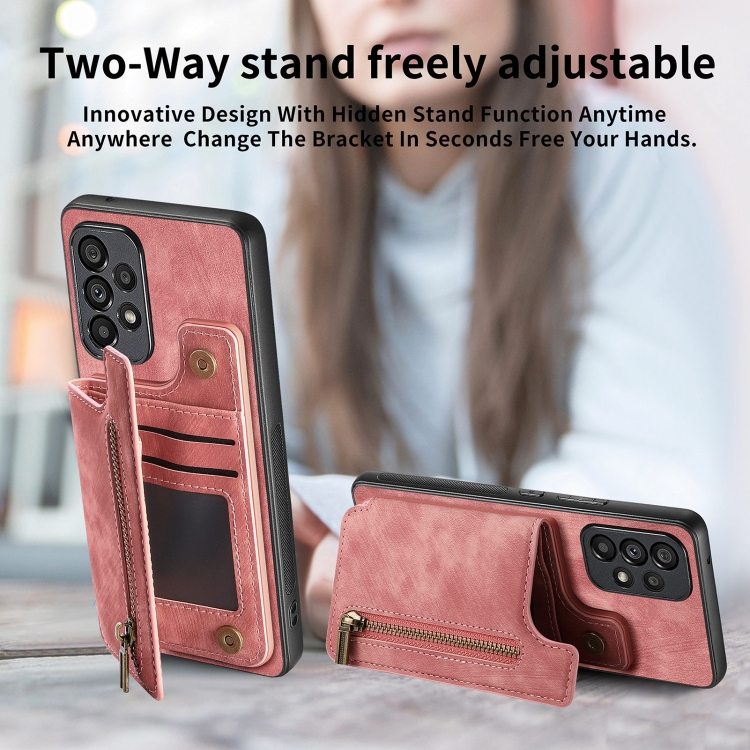 Estuche para Samsung Galaxy A30 A20 M10S con Billetera y Cremallera de Cuero (Rosa)