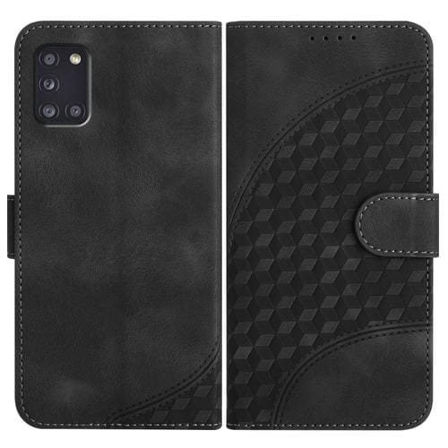 Funda de Cuero Samsung Galaxy A31 Yx0060 con Relieve y Cabeza de Elefante con Cordón (Negro)