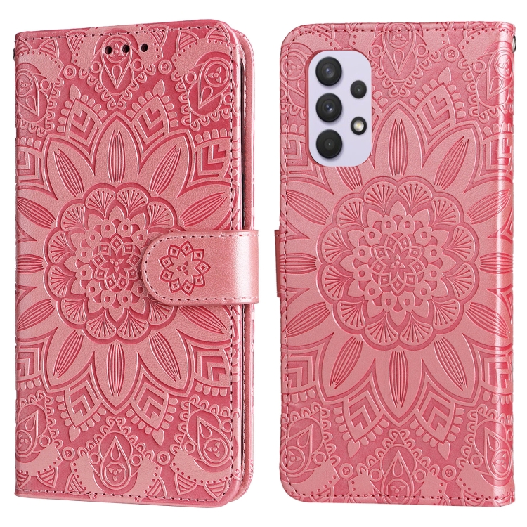 Funda de Teléfono Samsung Galaxy A32 4G Cuero Estampado Girasol En Relieve (Rosa)