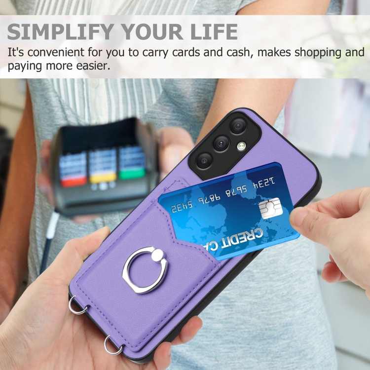 Estuche para teléfono Samsung Galaxy A34 5G R20 con soporte para tarjeta con anillo (Púrpura)
