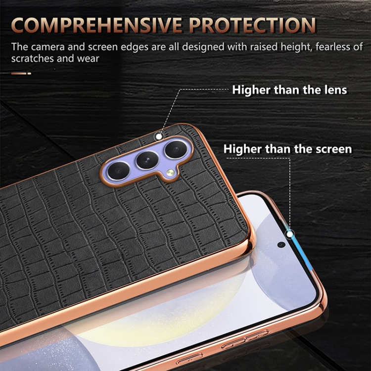 Estuche para teléfono Samsung Galaxy A34 Azns textura de cocodrilo marco galvanizado (Negro)