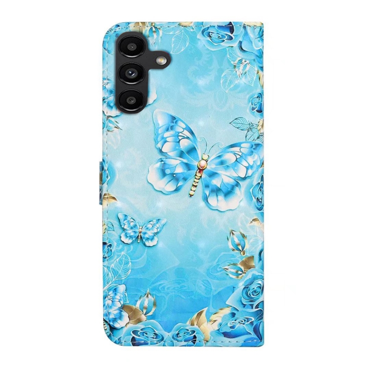 Funda de Cuero Samsung Galaxy A35 5G Dibujo 3D En Relieve al Óleo (Mariposas Azules)