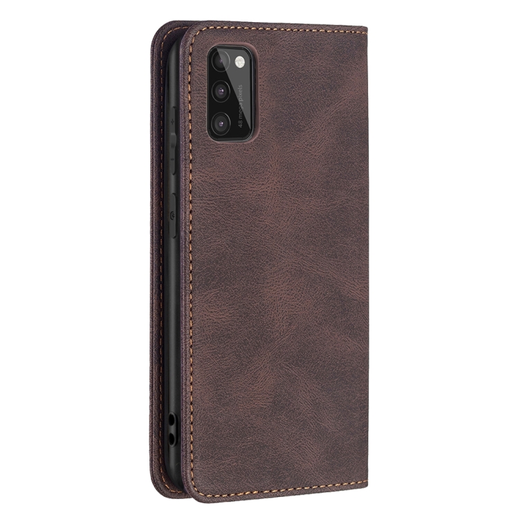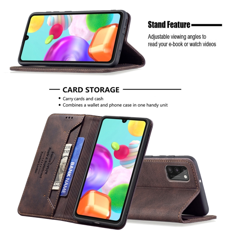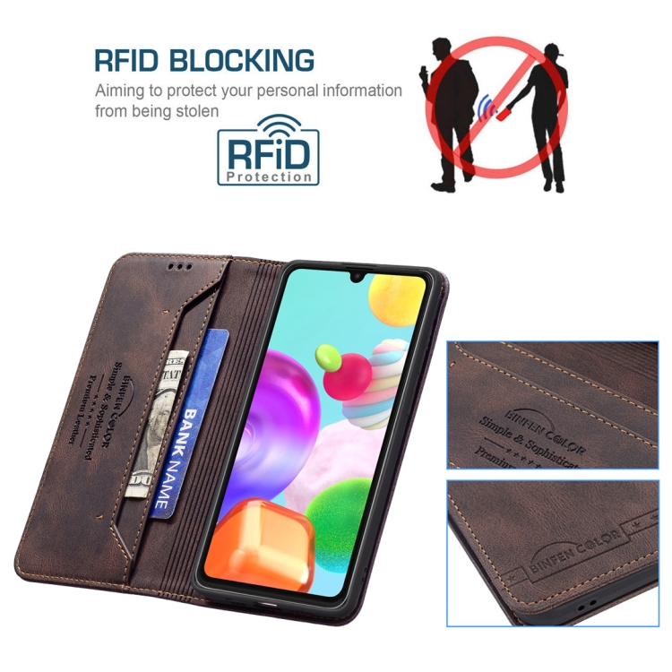 Estuche para Samsung Galaxy A41 Bloqueo Rfid Magnético Cuero Antirrobo Soporte Ranuras Tarjetas Billetera (Marrón)