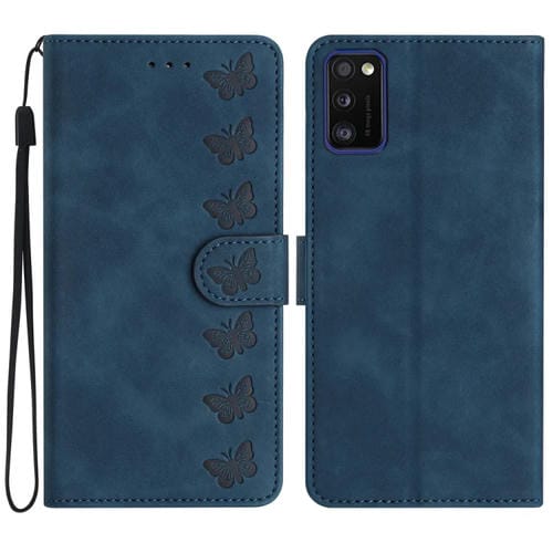 Caja de Teléfono Samsung Galaxy A41 Seven Butterflies Cuero En Relieve (Azul)