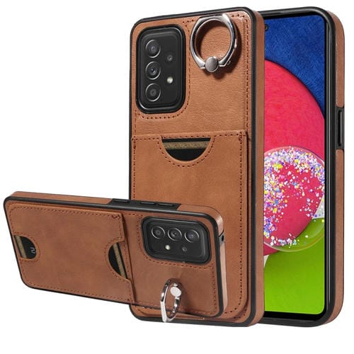 Funda para Teléfono Samsung Galaxy A52 5G / 4G / A52S 5G con Soporte Anillo y Ranura Tarjeta (Marrón)