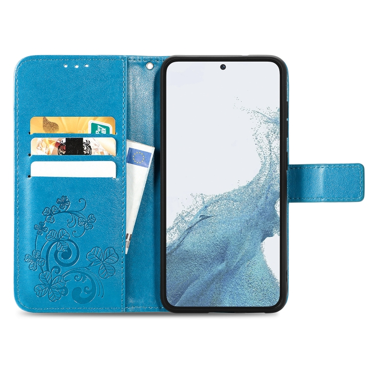 Estuche para Teléfono Samsung Galaxy A54 5G Cuero Hebilla En Relieve Cierre de Cuatro Hojas (Azul)