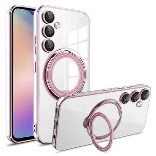 Estuche para teléfono Samsung Galaxy A54 Galvanoplastia Magsafe Soporte de Rotación 360 grados a prueba de golpes (Rosa)