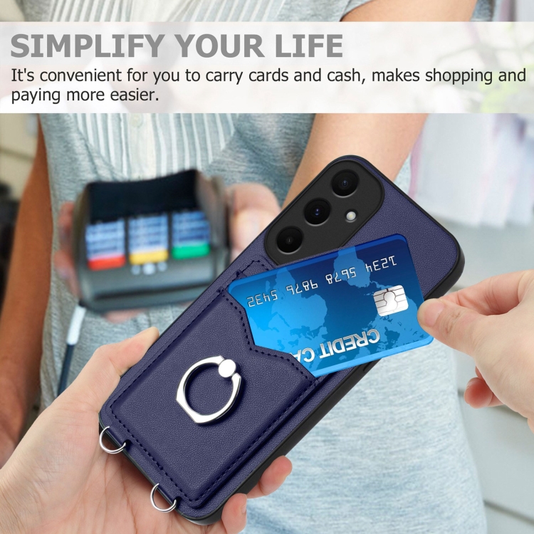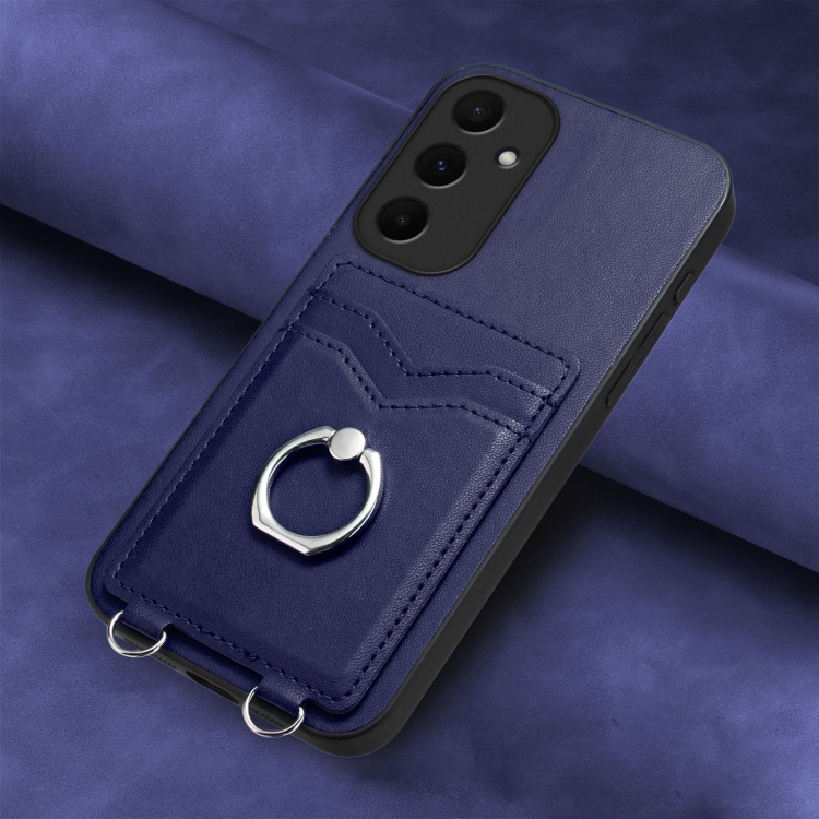 Estuche para Teléfono Samsung Galaxy A55 5G R20 con Soporte para Tarjeta y Anillo (Azul)