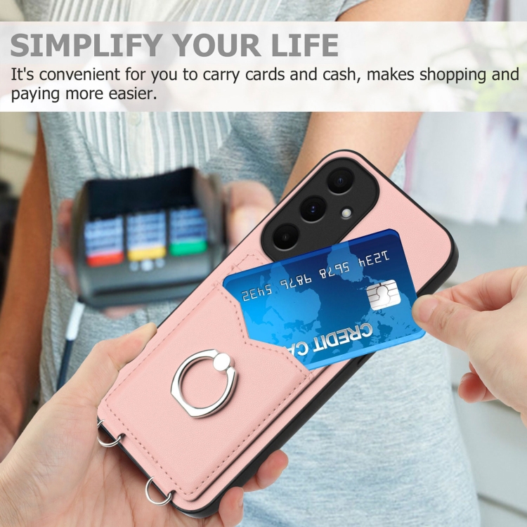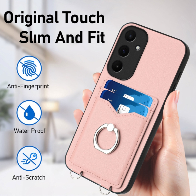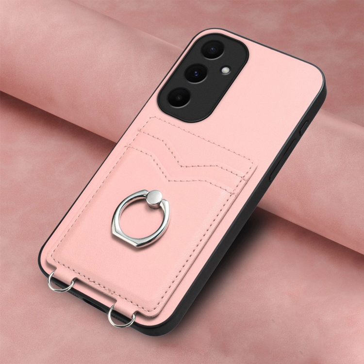Estuche para Teléfono Samsung Galaxy A55 5G R20 con Soporte para Tarjeta y Anillo (Rosa)