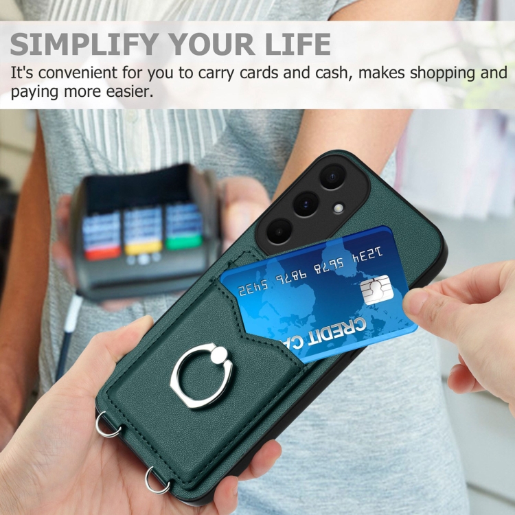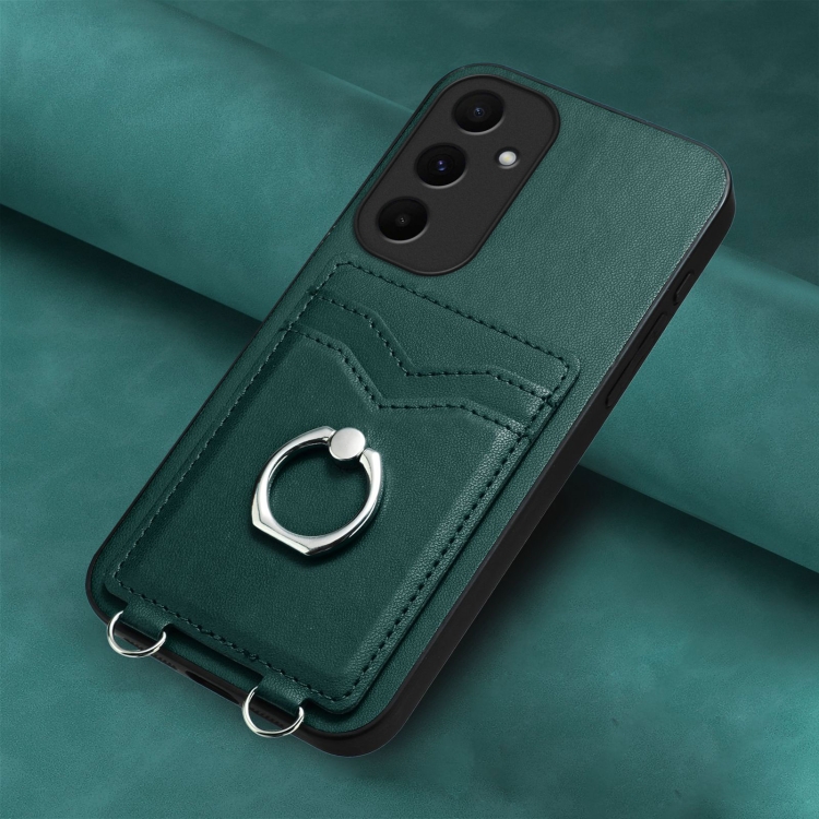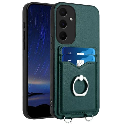 Estuche para Teléfono Samsung Galaxy A55 5G R20 con Soporte para Tarjeta con Anillo (Verde)