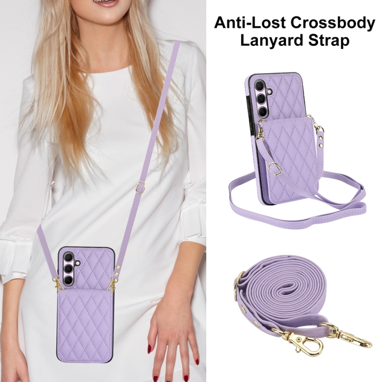 Funda Cruzada para Samsung Galaxy A55 5G Ym015 con Tarjeta Rómbica Rfid (Púrpura Claro)