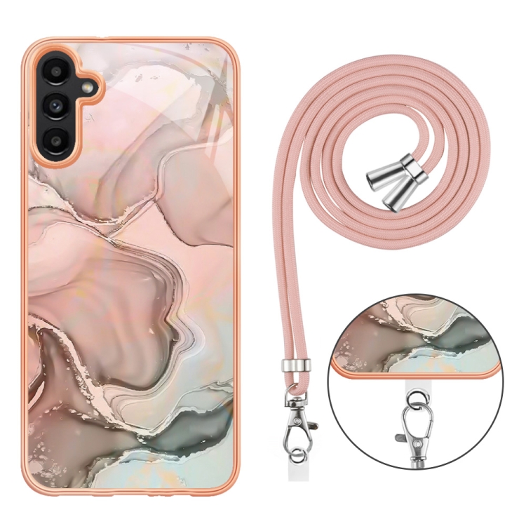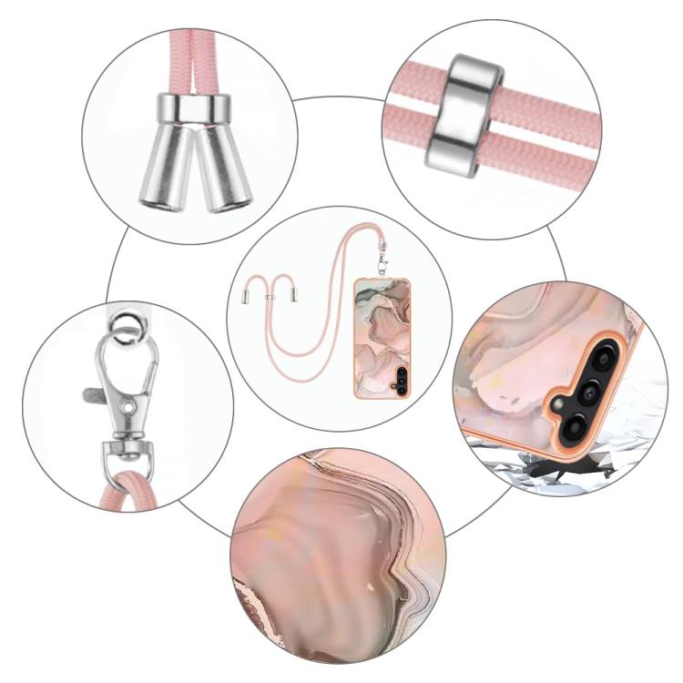 Estuche para Teléfono Samsung Galaxy A55 Imd Doble Cara Mármol Galvanizado con Cordón (Oro Rosa)