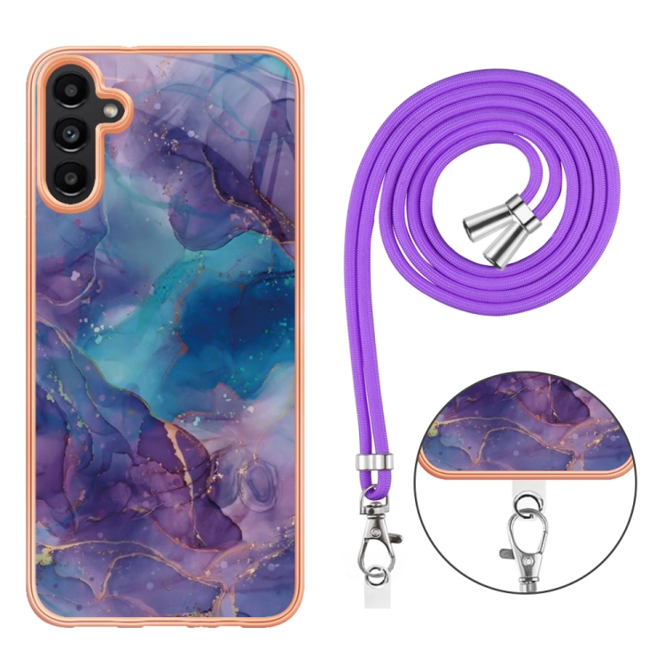Estuche para Teléfono Samsung Galaxy A55 Imd Doble Cara Mármol Galvanizado con Cordón (Púrpura)