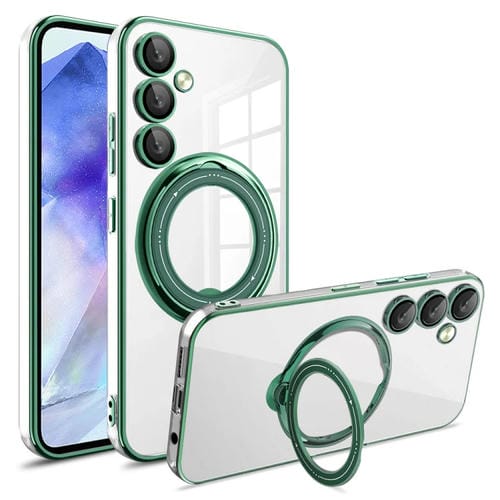 Estuche para teléfono Samsung Galaxy A55 Galvanoplastia Magsafe Soporte de Rotación 360 grados a Prueba de Golpes (Verde Oscuro)