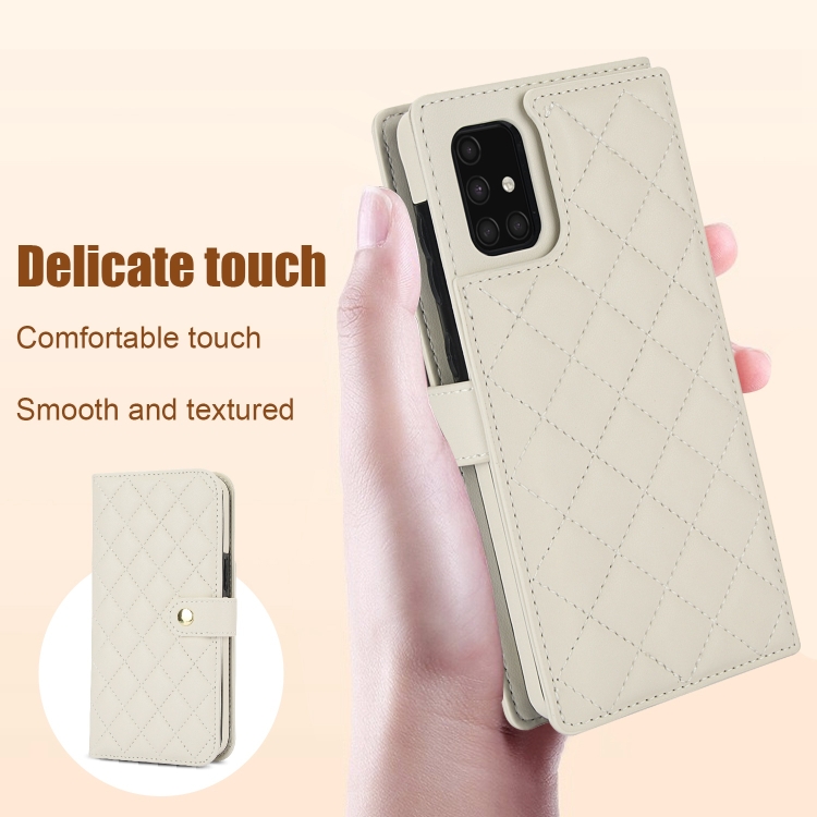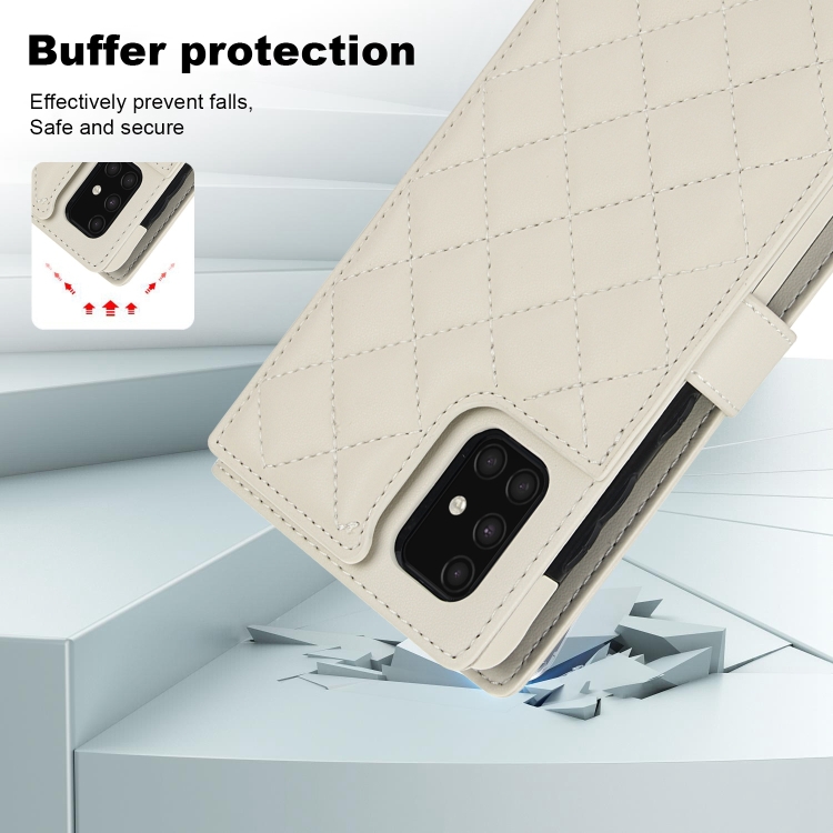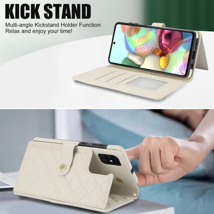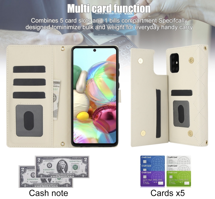 Estuche para Teléfono Samsung Galaxy A71 4G Crossbody Cuero Rómbico Multifunción (Blanco)
