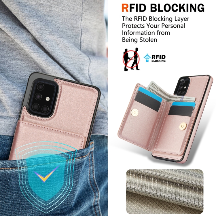 Estuche para teléfono Samsung Galaxy A71 4G Rfid Tarjeta Antirrobo con Soporte para Anillo (Oro Rosa)