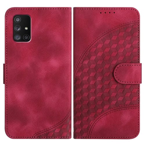 Funda de Cuero Samsung Galaxy A71 5G Yx0060 con Relieve y Cabeza de Elefante con Cordón (Rojo Rosa)