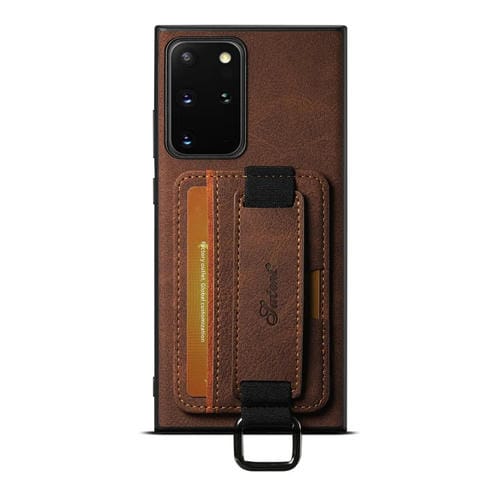 Funda para Teléfono Suteni H13 para Samsung Galaxy Note20 5G con Correa para Muñeca de Cuero Litchi (Marrón)