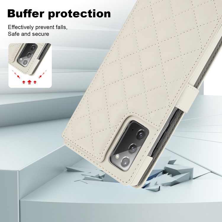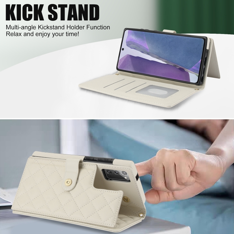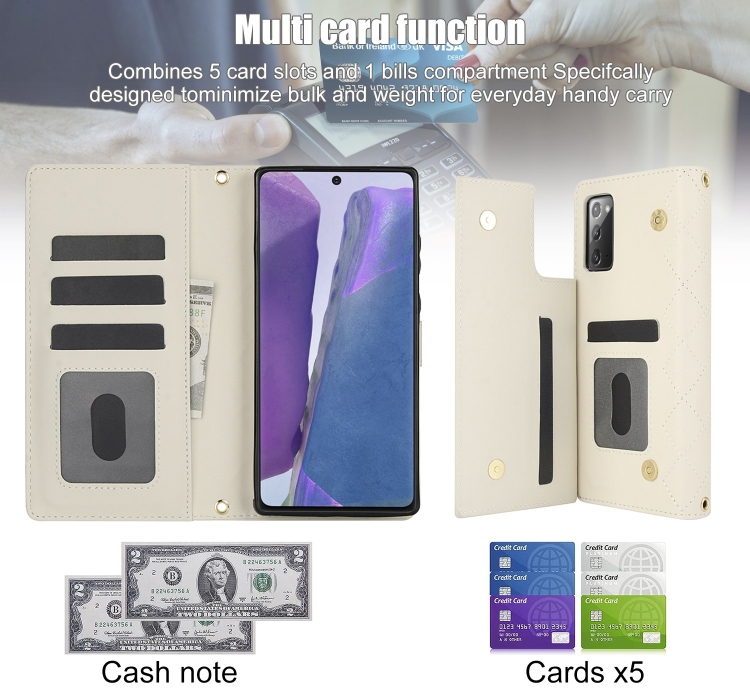 Funda Cruzada de Cuero Samsung Galaxy Note20 Rómbico Multifunción (Blanco)