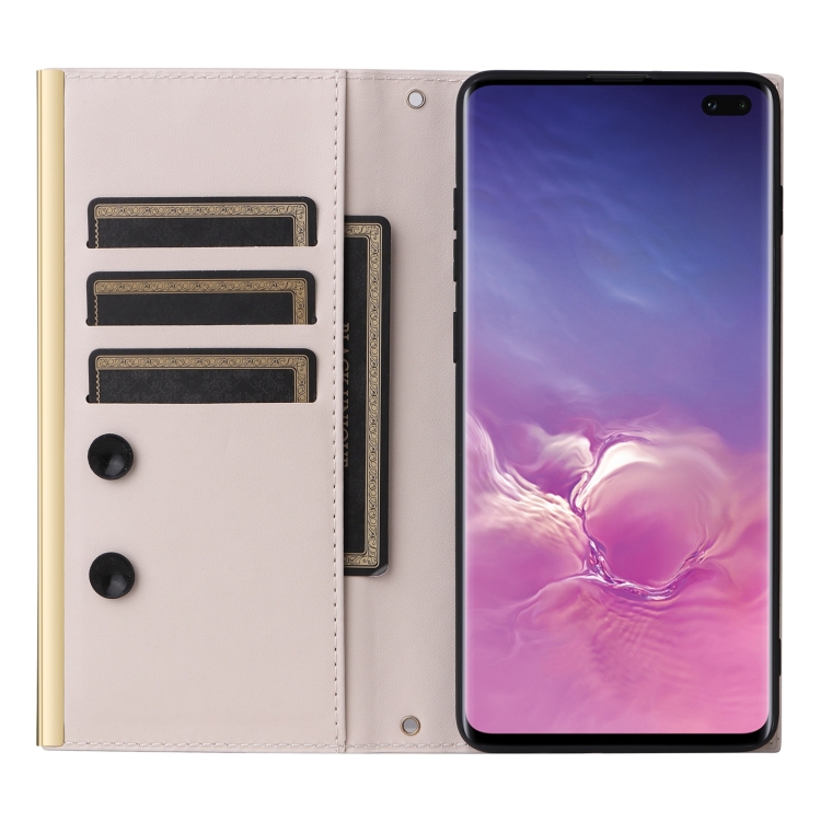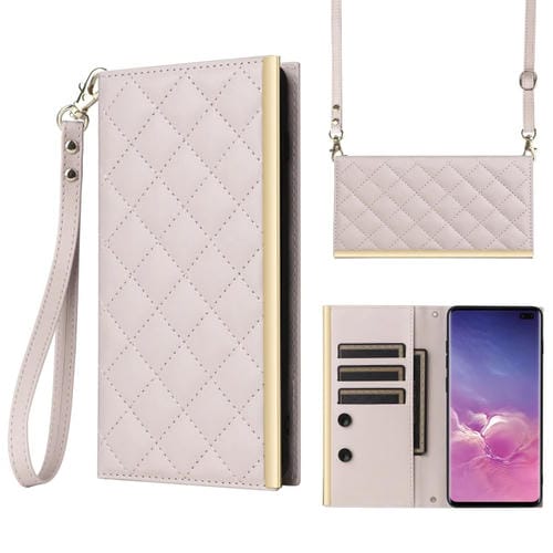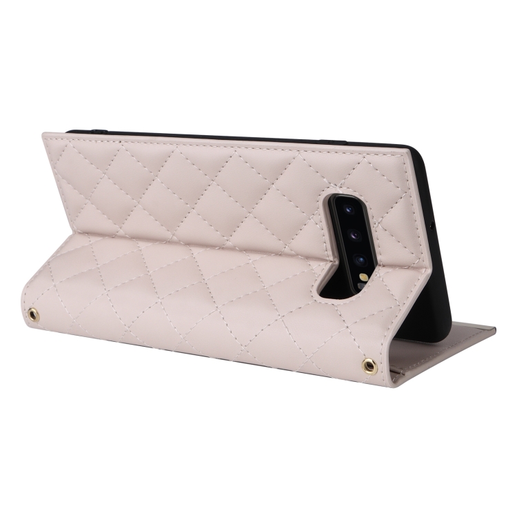 Funda Cruzada de Cuero + Ventosa Romboidal para Samsung Galaxy S10 (Blanco)