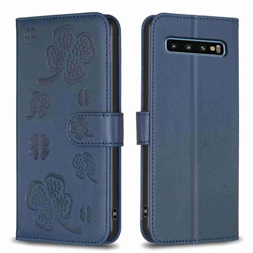 Funda de Cuero Samsung Galaxy S10 con Relieve de Cuatro Hojas (Azul)