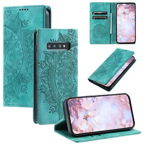 Funda de Cuero Magnética para Samsung Galaxy S10 + Totem en Relieve (Verde)
