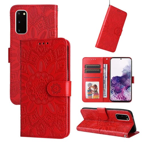 Estuche para Teléfono Samsung Galaxy S20 Cuero Estampado Girasol En Relieve (Rojo)