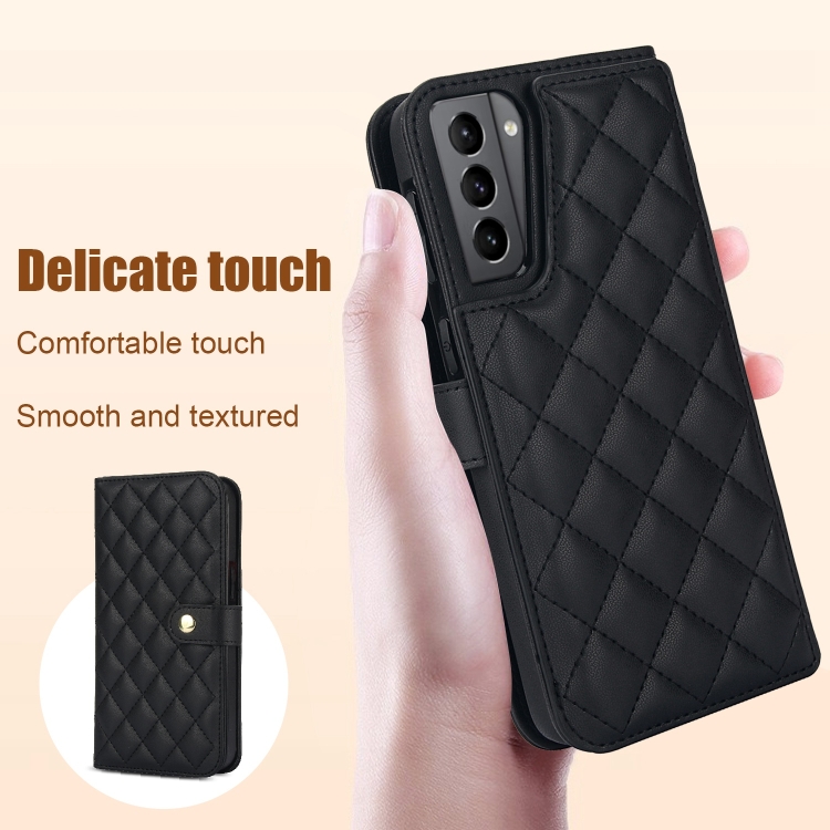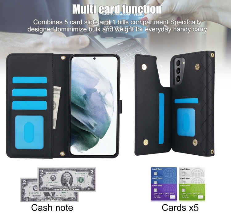Estuche para Teléfono Samsung Galaxy S21+ 5G Crossbody Cuero Rómbico Multifunción (Negro)