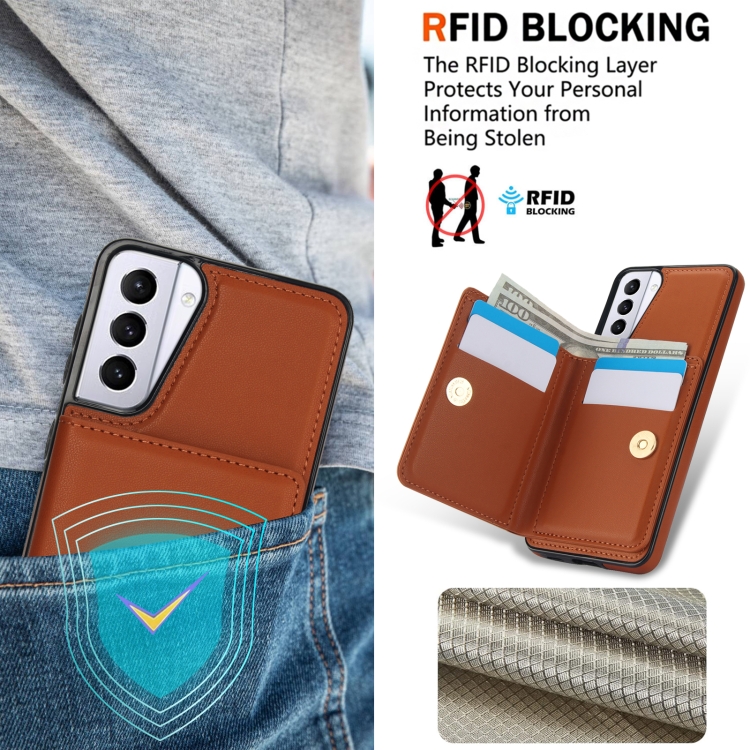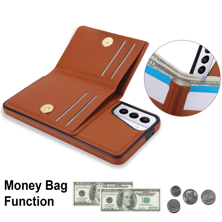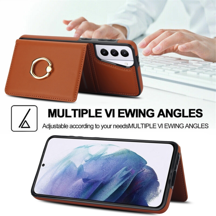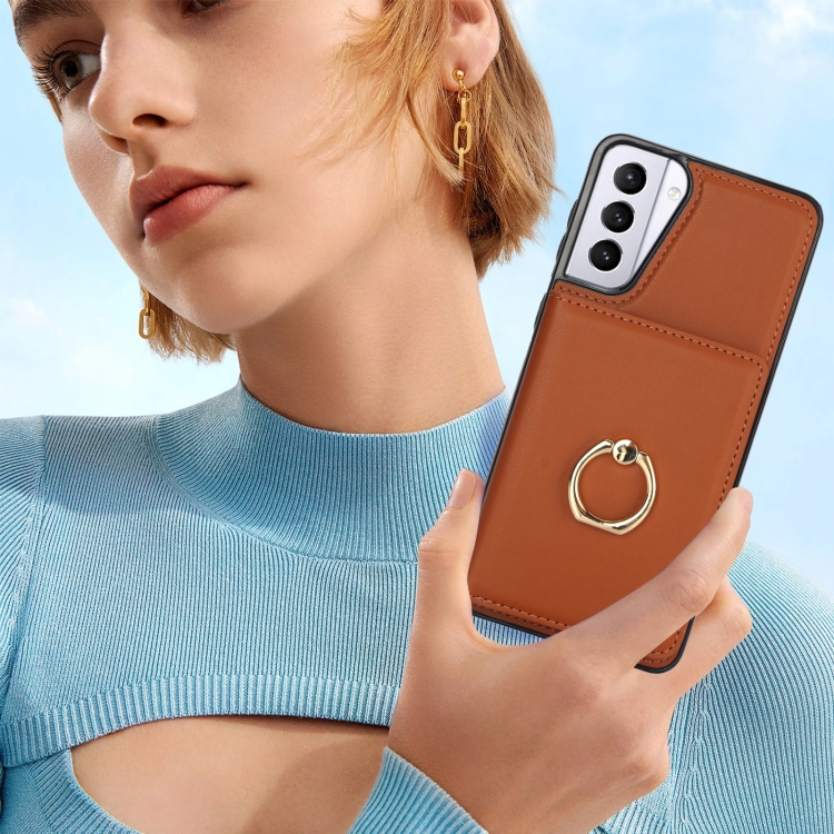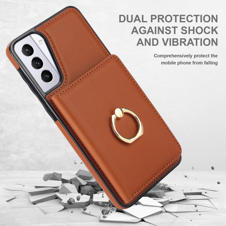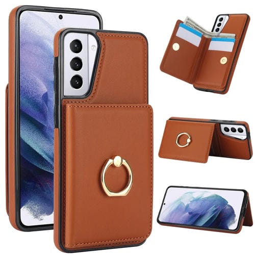 Estuche para Teléfono Samsung Galaxy S21+ 5G con Soporte para Anillo y Tarjeta Antirrobo (Marrón)