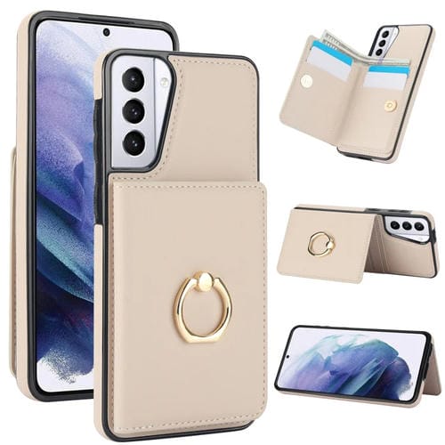 Estuche para teléfono Samsung Galaxy S21 FE 5G con soporte para anillo y tarjeta antirrobo Rfid (Blanco)
