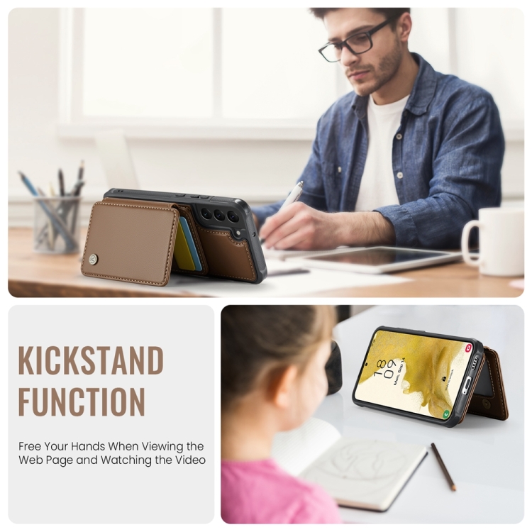 Estuche para teléfono Jeehood J05 para Samsung Galaxy S22 + 5G cuero Rfid magnético empresarial (Marrón)