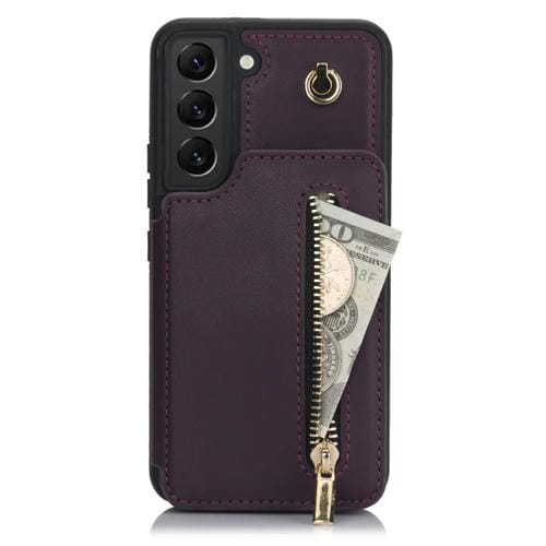 Estuche para Teléfono Samsung Galaxy S22 + 5G Ym006 con Bolsa para Tarjetas y Cremallera con Cordón Doble (Púrpura Oscuro)