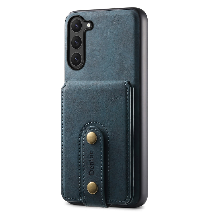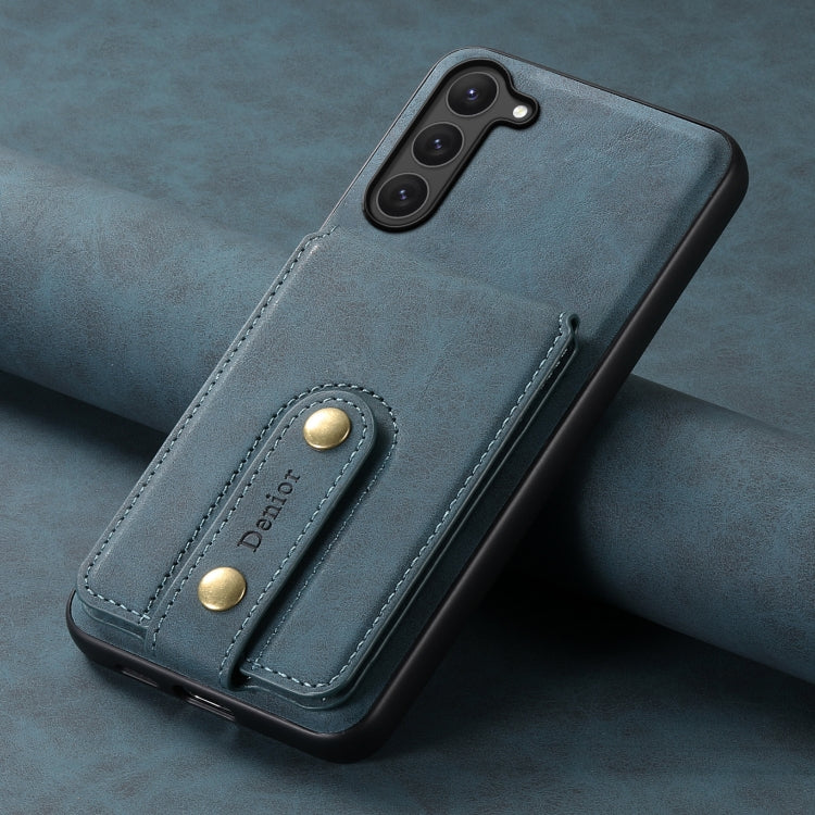 Estuche de Cuero Denior D14 Nk para Samsung Galaxy S23 5G con Tarjetero Magnético Magsafe Patrón Retro (Azul)