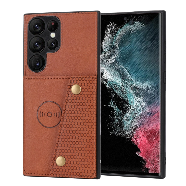 Estuche Magnético para Teléfono Samsung Galaxy S23 Ultra 5G con Doble Hebilla (Marrón)