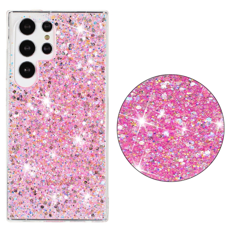 Estuche para Samsung Galaxy S24 Ultra 5G Transparente con Purpurina en Polvo de TPU (Rosa)
