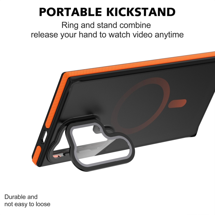 Estuche para Samsung Galaxy S24 Ultra 5G Magsafe con Película de Lente y Soporte Plegable (Negro)