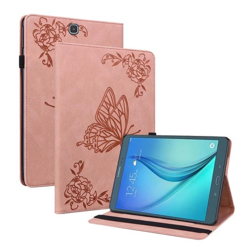 Funda para Tablet Samsung Galaxy Tab A 9.7 T550 T555 Cuero Relieve Flor Mariposa (Oro Rosa)
