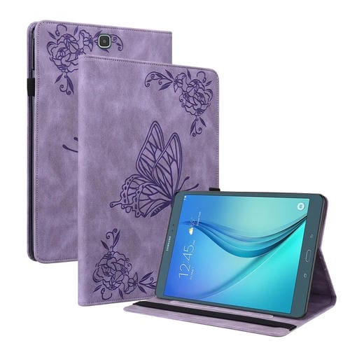 Funda para Tablet Samsung Galaxy Tab A 9.7 T550 T555 Cuero Relieve Flor y Mariposa (Púrpura)