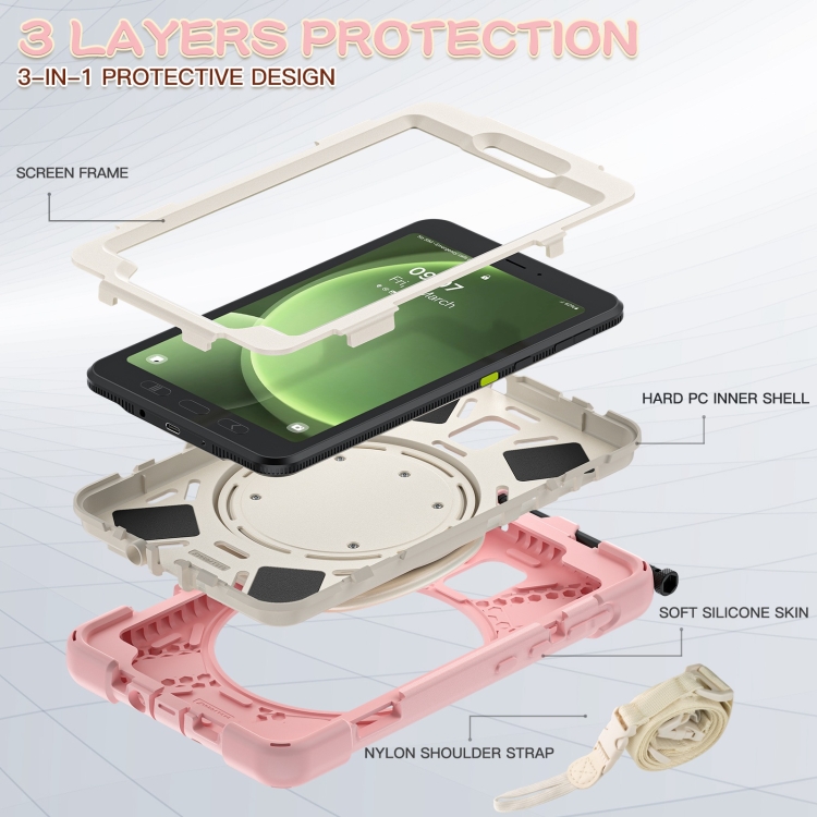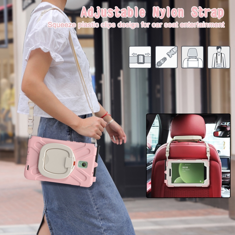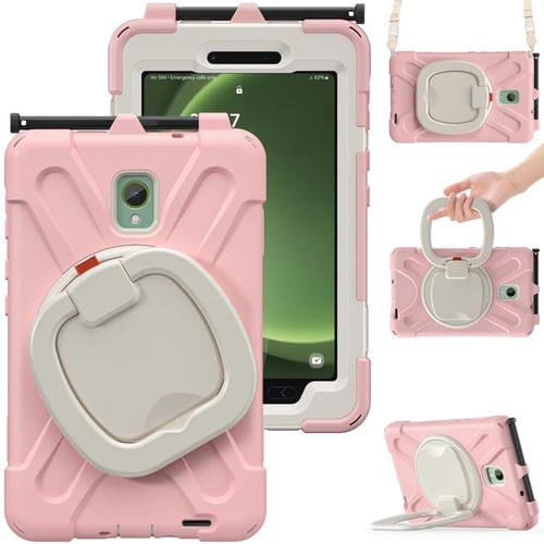 Funda híbrida de silicona Samsung Galaxy Tab Active5 X300 con soporte y correa para el hombro (Rosa)