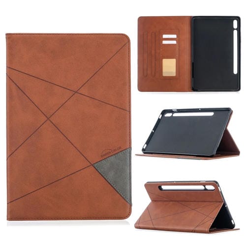 Funda para Tablet Samsung Galaxy Tab S8 y Galaxy Tab S7 T870 Rhombus Texture Horizontal Flip con Soporte y Ranuras de Tarjetas (Marrón)