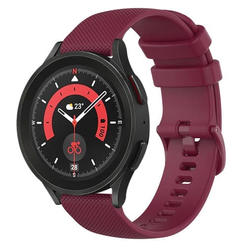 Banda de Reloj de Silicona a Cuadros para Samsung Galaxy Watch 5 Pro 45mm 20mm (Rojo Vino)