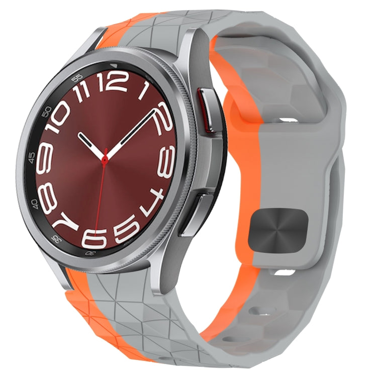 Correa de silicona para Samsung Galaxy Watch 6 Classic 43mm con hebilla inversa y textura de fútbol (Gris Naranja)