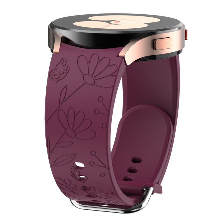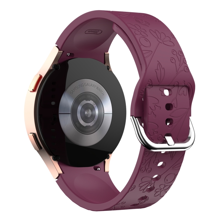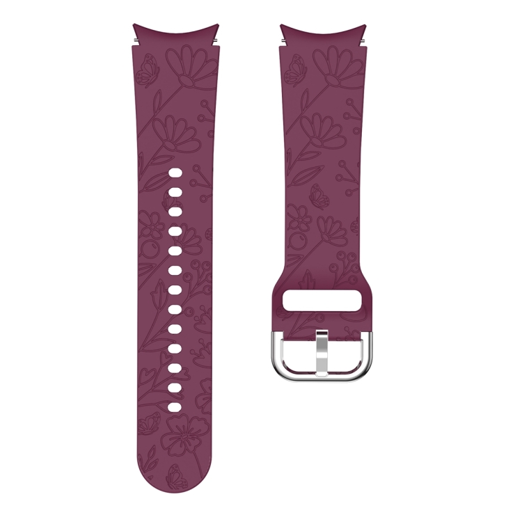 Correa de Silicona para Samsung Galaxy Watch 6 con Relieve de Flor y Mariposa (Rojo Vino)