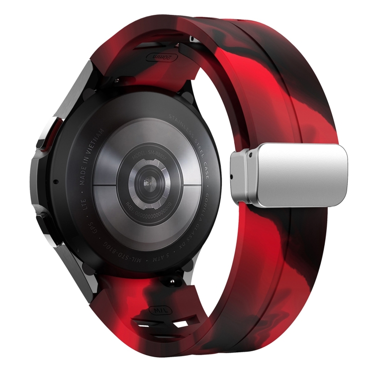 Correa de Silicona para Samsung Galaxy Watch FE 40mm Richard con Hebilla Plateada Plegable Magnética (Camuflaje Rojo Negro)